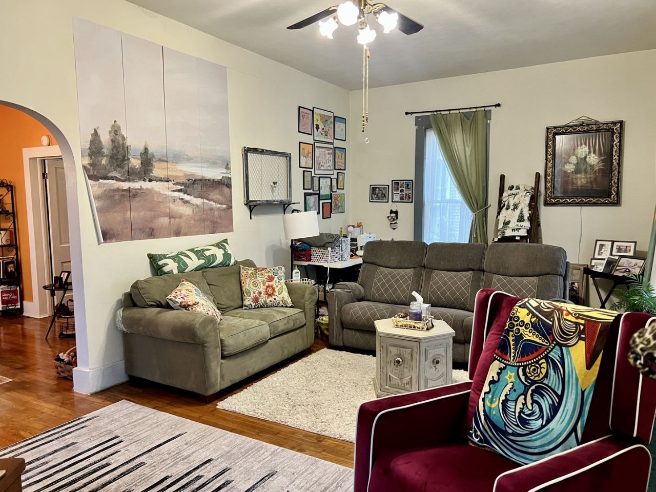 Embrace the charm of small-town living! Relax on the inviting, covered front porch, perfect for morning coffee. Inside, you'll find two comfortable main-level bedrooms plus a spacious third bedroom upstairs that works wonderfully as a playroom, office, or hobby space. The home features gorgeous hardwood floors throughout, an updated bathroom, and newer windows in most rooms for added efficiency. The kitchen offers abundant cabinet storage and a newer dishwasher, making meal prep a breeze. Outside, you'll love the shaded, privacy-fenced backyard - an ideal spot for pets, kids, and outdoor gatherings. Major mechanical updates provide peace of mind, including new HVAC and ductwork installed in 2021 and a brand-new furnace in 2025. Welcome home to comfort, character, and convenience! Sold as is.
