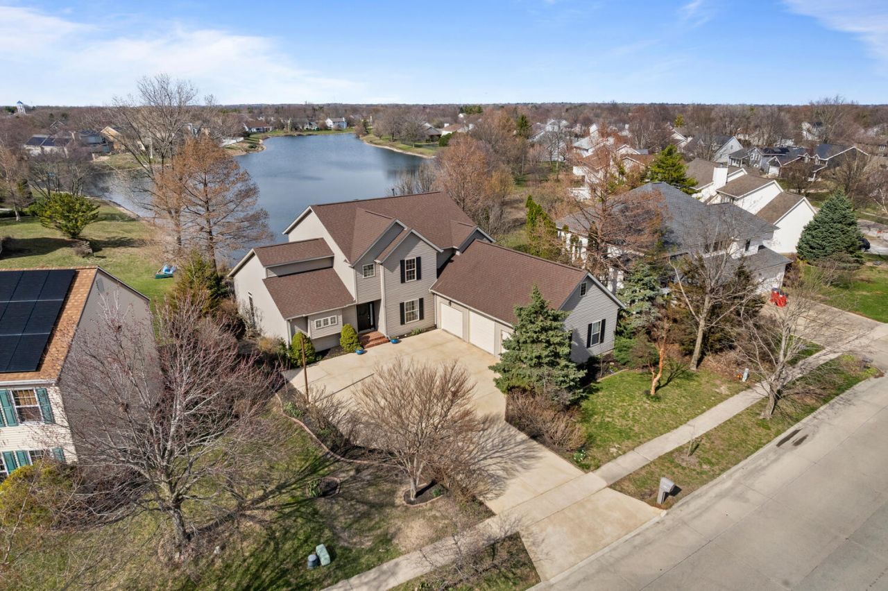 Enjoy peaceful lake views and beautiful outdoor living in this spacious home tucked away in one of Champaign's most desirable neighborhoods. Situated on a lovely lot, the property features a large backyard, expansive deck, and a brick-floored seasonal porch, creating the perfect setting for relaxing evenings, entertaining friends, or simply taking in the view. Inside, the home offers a well-designed layout with a first floor primary suite, providing convenience and privacy. The main living room areas are filled with natural light and feature an open floor plan with built-ins surrounding the two-sided fireplace, along with a separate dining room (currently used as a home office). Upstairs you'll find a versatile bonus room overlooking the lake and complete with a wet bar, making it an ideal space for entertaining, a media room, game room, home office or guest retreat. Finishing out the upstairs are three additional bedrooms (one with a lake view) and a full bathroom with a double vanity. Throughout the home, you'll also appreciate the ample storage options, providing plenty of room to stay organized. With its beautiful lake setting, inviting outdoor spaces, and spacious interior layout, this home offers a wonderful opportunity to enjoy both comfort and scenery in Champaign.