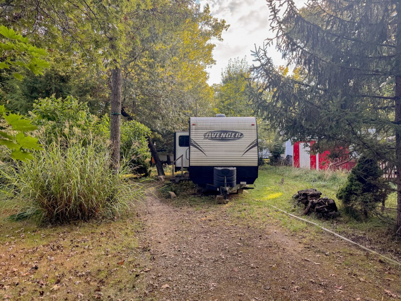 This listing package incudes a 2017 Avenger travel trailer with an abundance of rich cabinetry throughout and an outdoor kitchen. The pie shaped lot includes a gazebo so you can enjoy the outdoors-rain/shine! A large shed with a metal roof for storing all the camping necessities. Also included is a 2018 Kymco Super850 scooter for your enjoyment! Call to schedule a showing on this lovely listing today. Gated facility-must be accompanied by a Real Estate Broker to view listing. Property owner is responsible for yearly assessments. This is not a homestead property.